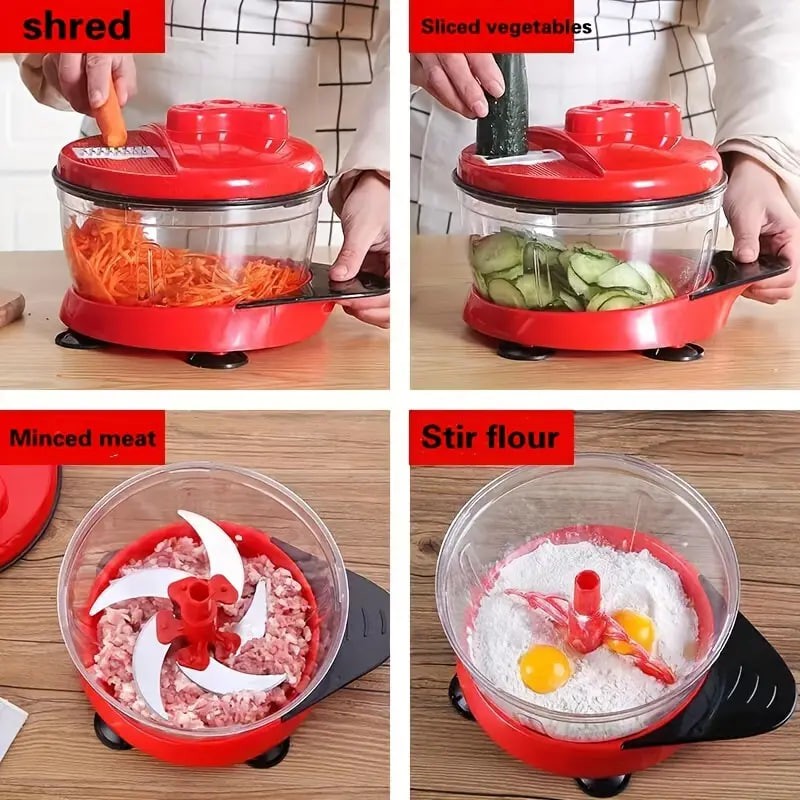 1 Set, Manual Meat Grinder, Hand Shake Mixer, Multifunctional Vegetable Slicer, Carrot Shredded Grater, Food Crusher, Kitchen Cooking Machine, Meat Mixing And Cutting Vegetable, Kitchen Stuff Kitchen