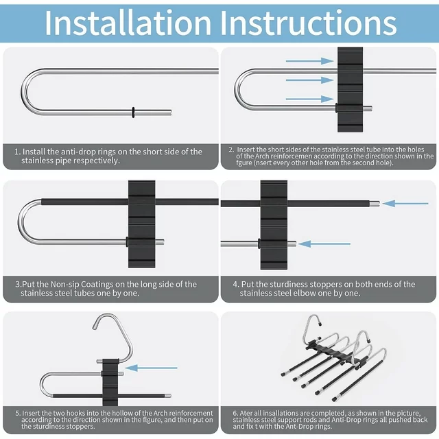 【Sturdy &Durable】-The pants racks for hanging pants made up of high strength ABS frame and stainless steel.It is sturdy and durable enough for thick clothing.The pants hanger rack wouldn't bend or break,even hanging up 5 pieces of jeans.