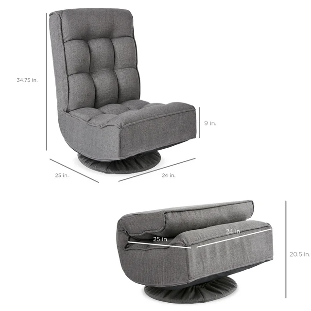 Take a seat in a chair that's both comfortable & fun. Gaming, relaxing, or catching your favorite show - this adjustable chair keeps you comfortable no matter your lounging need! Versatile use makes it perfect for various activities in various locations such as your bedroom, living room, and more. With a 360° swivel function + adjustable backrest, this seat is perfect for yoga, nursing, watching TV, or reading! A sturdy frame and linen fabric with tufted cushioning provide lasting comfort, while floors are kept safe with the removable base/bottom cover. Comfortable cushions are set over a durable steel frame that holds up to 285 lbs. for a durable build, while folding functionality means easy storage in the closet or other compact spaces to keep it out of the way after use. So, look no further for a seat built with a foldable design to suit your needs in any moment.