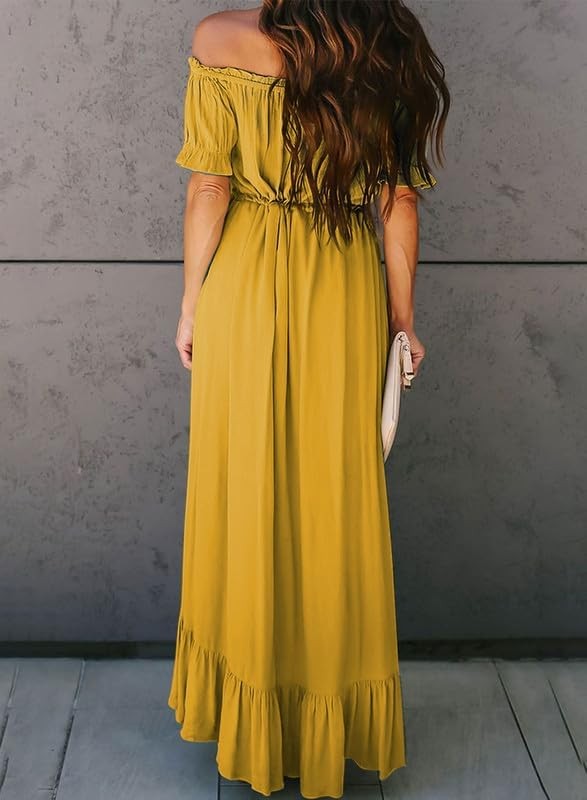 Women Dress Off The Shoulder High Low Hem Maxi Dresses