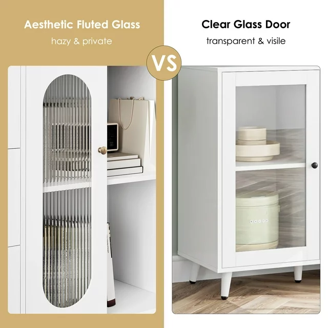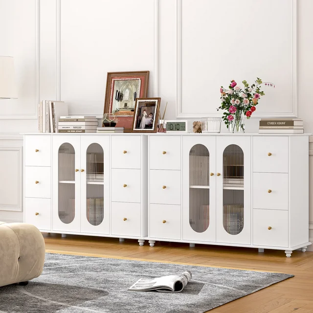 【Modern White Style & Elegant Fluted Glass】Special glass not only makes this sideboard cabinet elegant and exquisite, but also can privacy protected. Modern white cabinet style will matches well with various decoration styles.