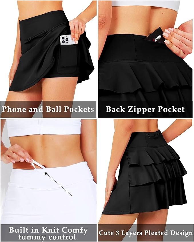 ??♀️【Features 】:16'' Tennis skirts features 2 inside pockets and 1 rear zip pocket with built-in shorts. Pleated skirts for women holds your cell phone, tennis balls, cards or keys without falling out during athletic.