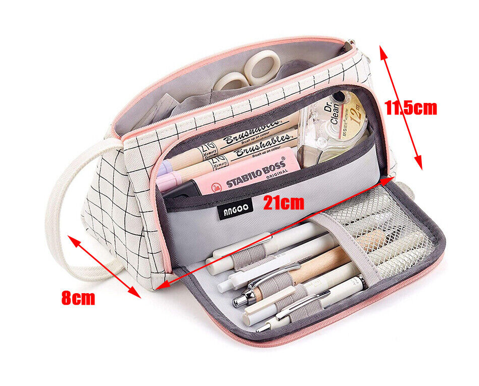 Size: 20 x 11 cm (7.87 x 4.33 inch), allowing many pens and other gadgets. Space for eraser, stapler, scissors, clips, pencil crayons, sharpener, rubbers, rulers not longer than 20cm.