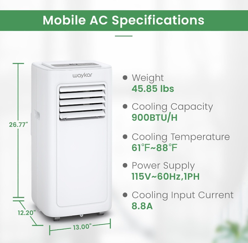 3 in 1 FUNCTIONALITY - The compact and modern air conditioner combines 3 efficient function with cooling, dehumidifier and fan to meet all your cooling & ventilation needs. Waykar portable AC unit will keep air both dry and cool in easy operation, provides the healthy and cool air environment, which is the Best Option to save money and space.